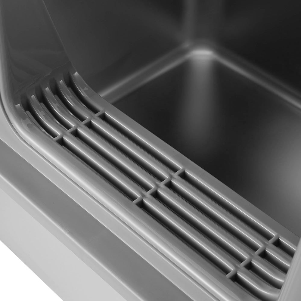 Keep your home cleaner and your feline friend more comfortable with the Tieker semi-enclosed cat litter box. Thoughtfully designed with a durable stainless steel base and a detachable PP top cover, this litter box offers easy maintenance and long-lasting use. The semi-enclosed structure provides cats with a sense of privacy while the elevated sides help contain splashes. A cleverly designed hollow pedal minimizes litter tracking, keeping floors tidy. With its low-entry front and side-mounted scoop, daily upkeep is effortless for both pet and owner.