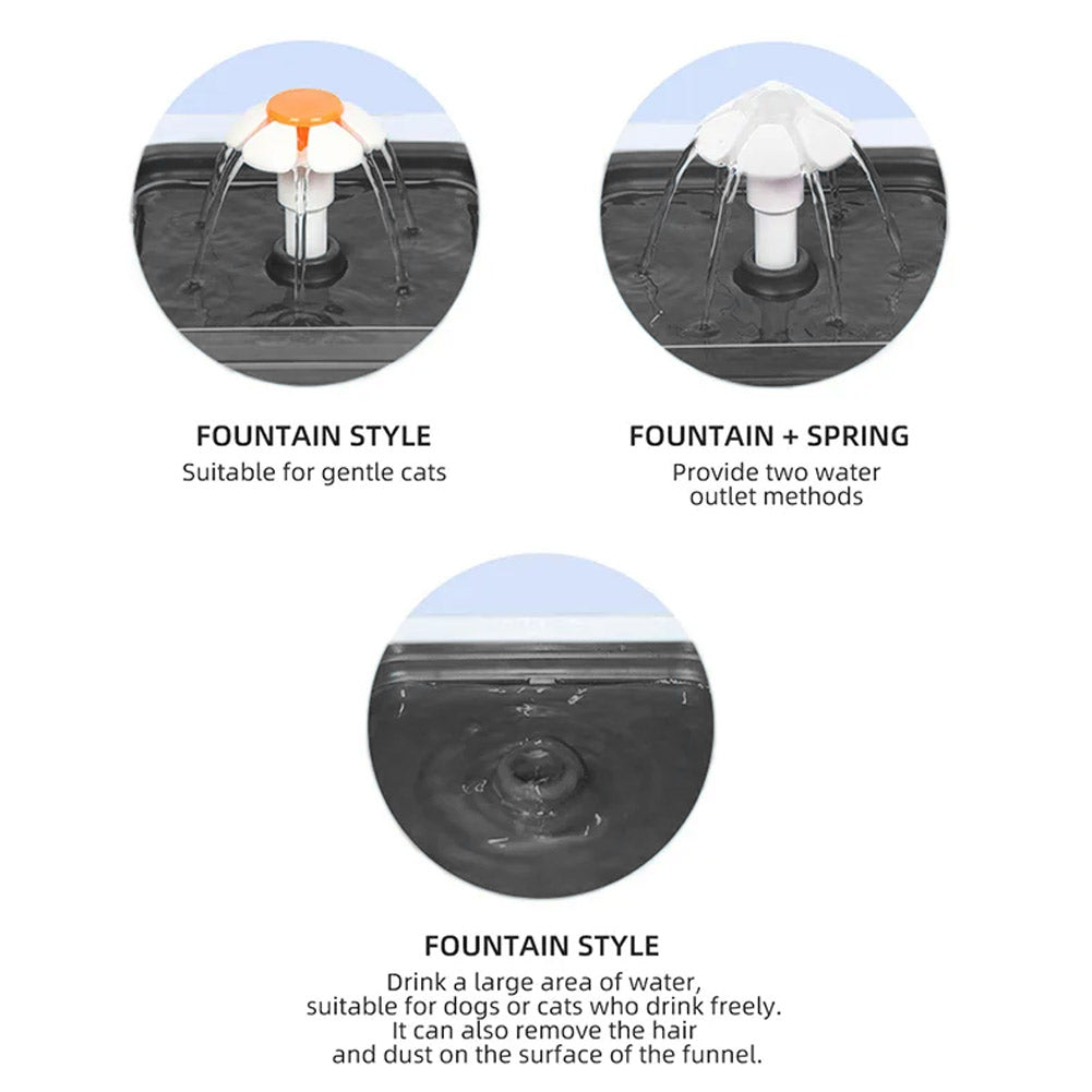 Choose between two different water outlets: fountain, fountain+spring