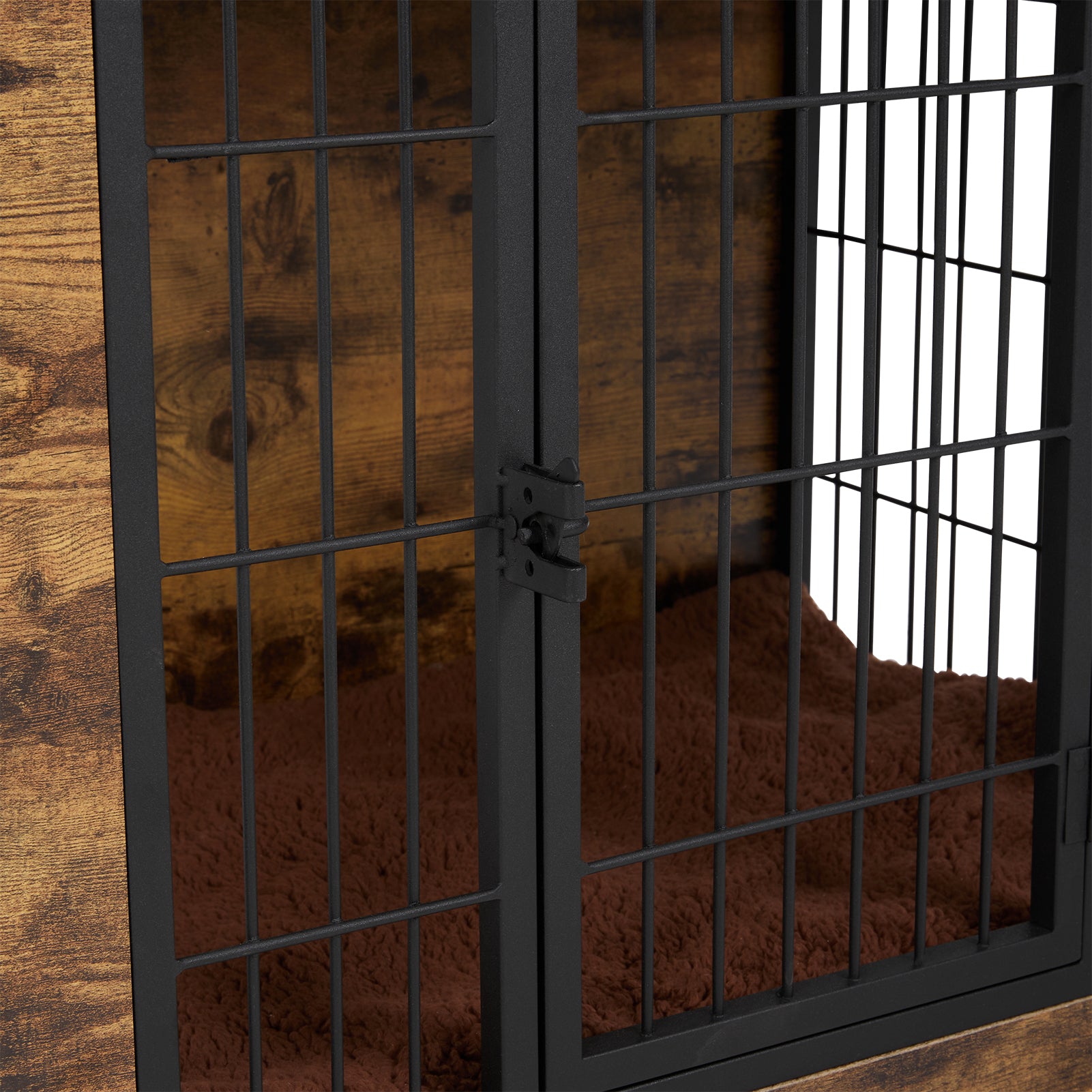 Add a touch of rustic charm to your home while offering your dog a safe and comfortable retreat with this farmhouse-style crate from Tieker. Featuring a sleek wood grain finish combined with black metal framing, this stylish crate doubles as a functional end table or sideboard. Its well-ventilated design ensures your pet feels secure yet connected to the home environment, while the spacious interior provides a relaxing space for rest. With front and side access and lockable doors, it’s a practical blend of aesthetics and security that complements modern living.