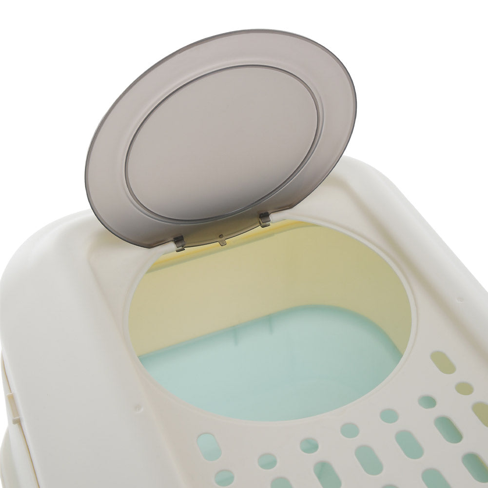 The smart dual-entry system includes a front door for easy access and a top opening for an effortless exit, encouraging natural movement and reducing mess. The flip-up hood opens wide for quick scooping, and a dedicated scoop holder keeps cleanup tools neatly within reach. Made from BPA-free, non-toxic materials, this litter box is built to support a healthier, more hygienic pet environment.